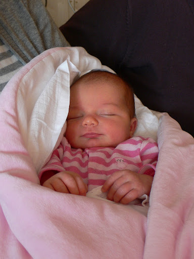 Porod dlouhej a náročnej, v neděli postupně odtékala voda, v pondělí v půl jedné v noci rupla definitivně, začly kontrakce po 4 minutách, asi ve tři jsme jeli do porodnice, než byl hotovej příjem, bylo kolem pátý.. všechny kontrakce křížový, hnus největší, takže jsem byla většinu času jen ve sprše nebo na monitoru a mezi kontrakcema občas odpočívala (spánek chyběl..). Ještě celé dopoledne jsem byla „na dva těsně“, po tabletě „na dva volně“, pak infuzi, pak další a pak už jsem myslela, že polezu po zdi, že moje záda nejsou moje.. kolem jedenácté otevřená asi na čtyři, tak klystýr, celkem úlevná záležitost, a mezi jednou a druhou hodinou najednou osm až devět, tak si přitlačujte.. vůbec jsme neměli tu fázi „teď netlačte, nesmíte“. Tak jsem si chvíli přitlačovala, ačkoli už jsem teda byla fakt unavená, ale tlačení byla aspoň nějaká změna - dost mě ubíjelo, že mě to bolí, ale nikam to nespěje. Když to začalo konečně někam spět, aspoň mě to trochu potěšilo a motivovalo. No a za pár chvilek se malá vyloupla, já mám dva malé stehy, takže pohoda, a malá Apgar 10-10-10. Jen tak trochu ze slušnosti zaplakala, aby se neřeklo, a pak celé ty dvě hodiny odpočívání na sále koukala modrýma očkama na svět a špulila pusinku. Krásně a brzo se přisála, je to pohodářka