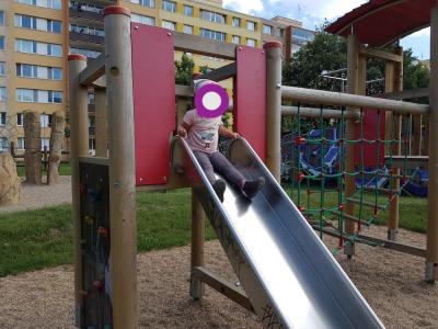 Najdete zde 2 oplocené hřiště. První je větší pro děti různého věku s herními prvky jako jsou řetězové houpačky, houpačka pro 2 děti, houpací hnízdo, provazové prolézačky a pískoviště. Povrch pod hracími prvky je pokrytý pískem, okolí je travnaté.